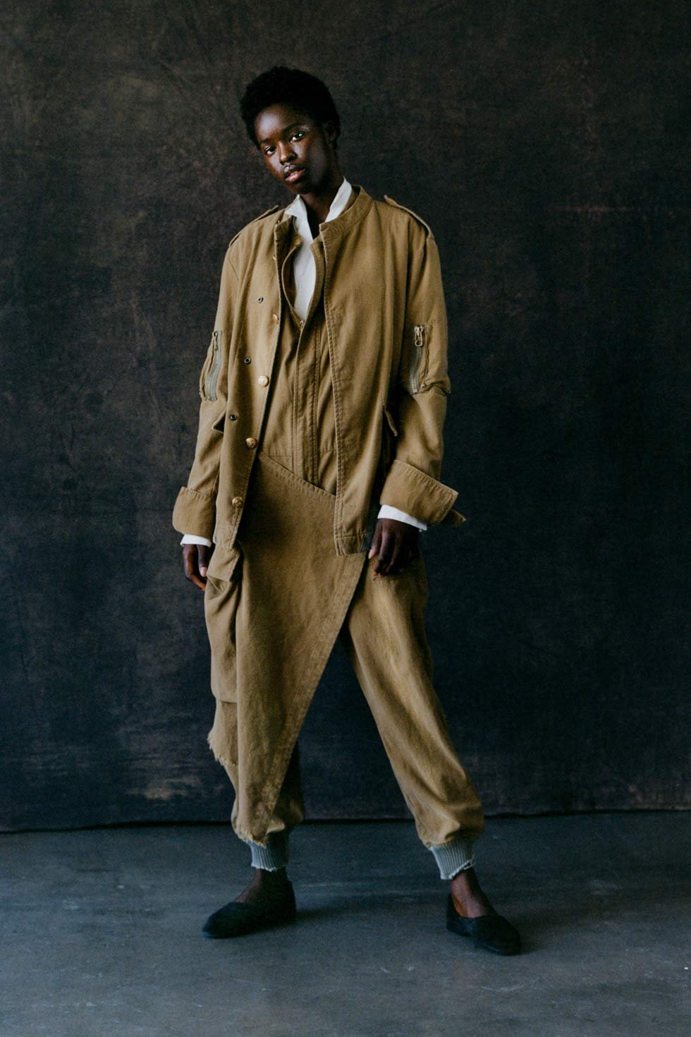 Con algunos looks bastante gender neutral, Greg Lauren propone pantalones holgados, muchas texturas ligeras en las telas y colores de la tierra: verdes, azules, blancos, cafés y rosas.