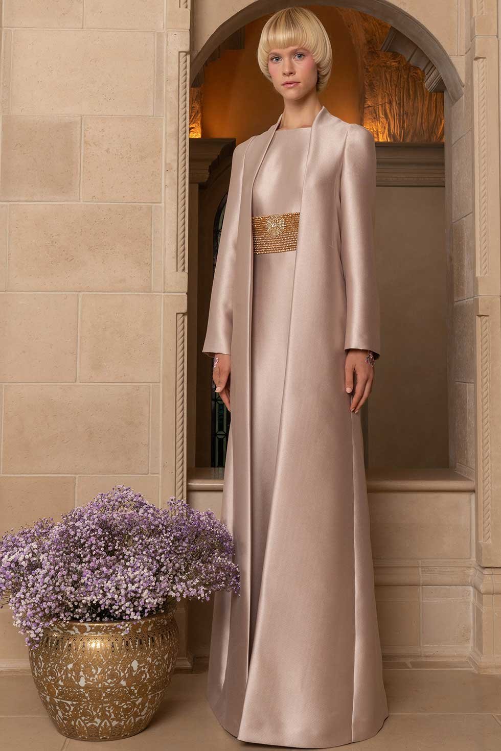 También encontramos un vestido lencero largo hasta el suelo cubierto objetos deslumbrantes, que podrían verse bastante bien en una fiesta de noche.