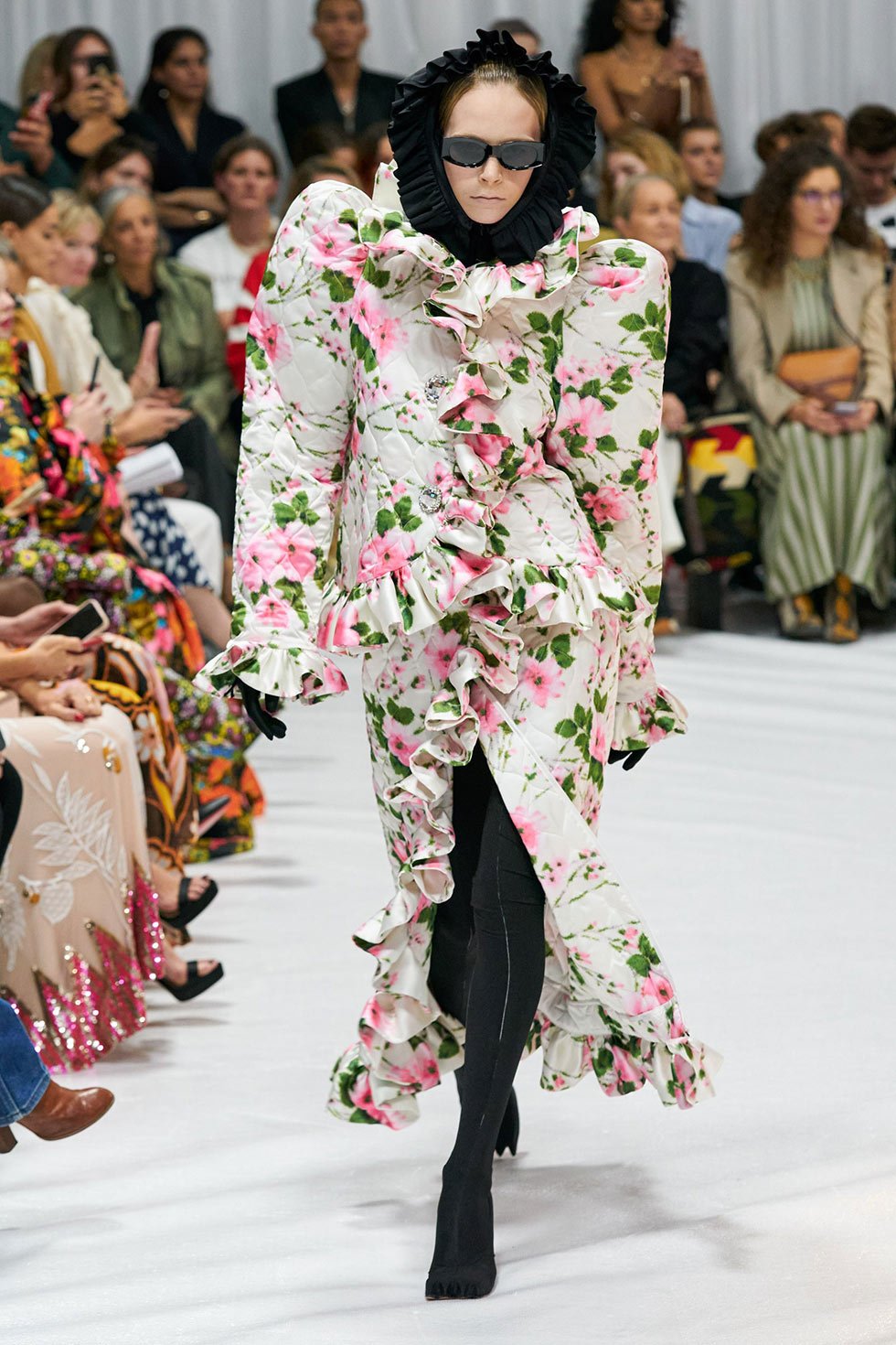 Con estampados de colores vivos un globo lleno de flores en el centro de su espectáculo, y una audiencia llena de celebridades, Richard Quinn fue aplaudido varios minutos al final del show.