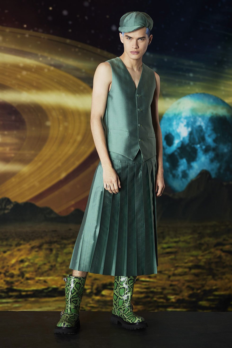 Cuando piensas en el futuro, en los viajes espaciales, seguramente los colores que te llegan a la mente son los que le sirvieron de eje a Jeremy Scott para la línea pre-fall 2022 de Moschino.