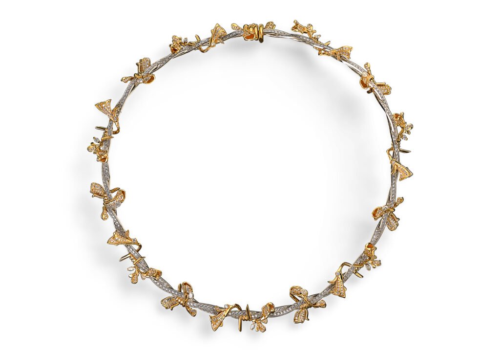 La familia Primavera se inspira en la delicadeza de las flores silvestres. La familia incluye dos collares, un anillo y dos juegos de pendientes, cada uno de los cuales destaca por la complejidad de su diseño y el desgaste de los diamantes. La versátil familia Catena deriva su estética de las antiguas lámparas de araña venecianas, al tiempo que evoluciona las formas y de las líneas de joyería Fin y Twisted de Bottega Veneta.