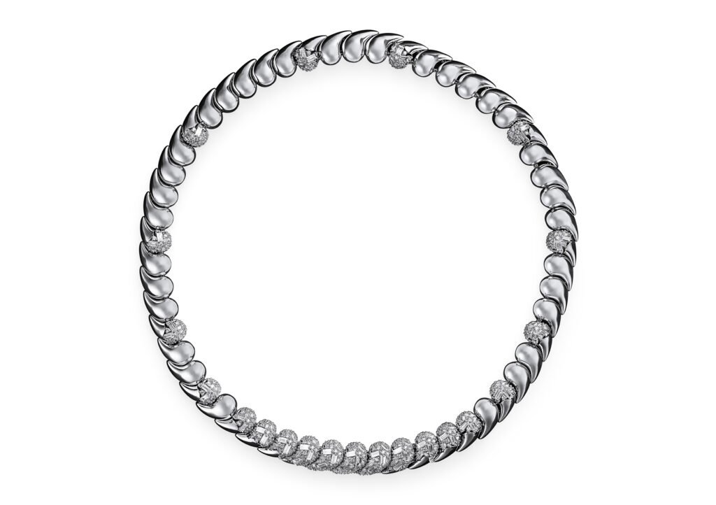 Combinando la forma orgánica de la gota con materiales de exquisita exquisitamente elaborados, las ediciones de alta joyería incluyen una pulsera pendientes en lustroso oro amarillo, y un collar, un anillo y unos pendientes en reluciente oro blanco con extraordinarios diamantes engastados a mano.