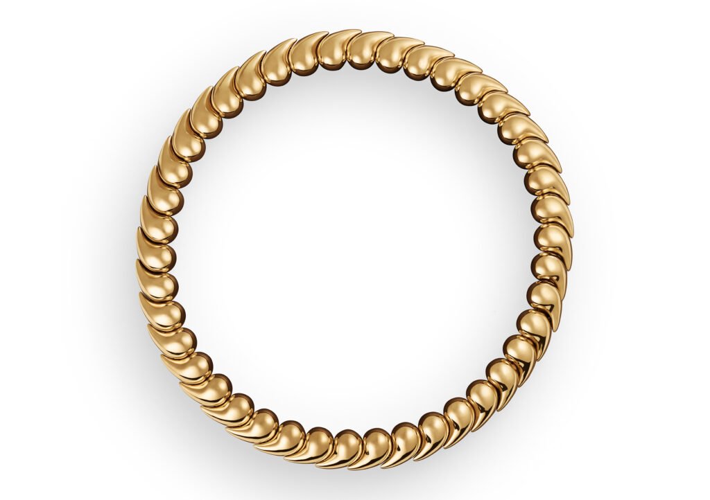 Elaborada con expertas técnicas de fundición, la familia incluye dos pulseras que pueden combinarse para formar un collar.