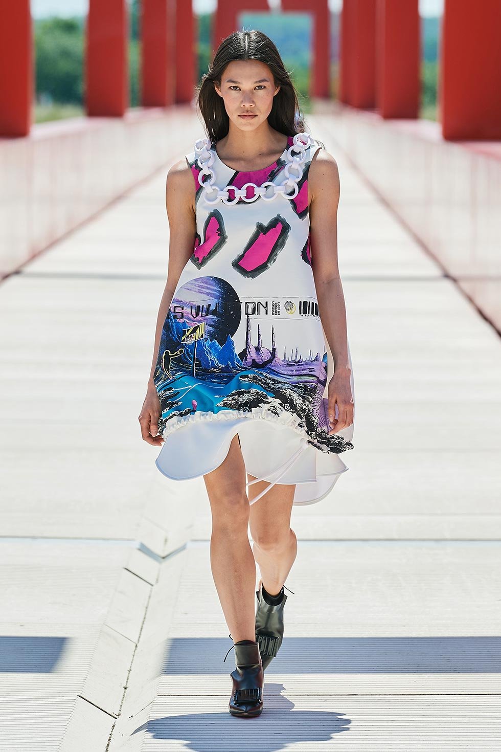 De hecho, el creador lo ha dicho públicamente, las impresiones anacrónicas de Louis Vuitton están inspiradas por los viajes al espacio y los paisajes extraterrestres.