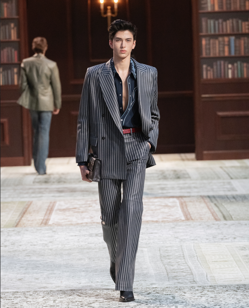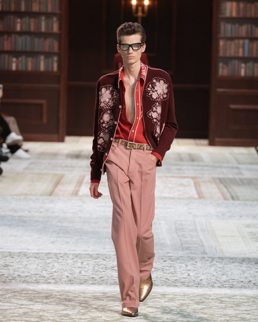 “Lo más interesante del formalwear masculino es cuando se siente personal”, afirma el diseñador. Esa idea guía la colección: blazers sobre henleys, botas en lugar de zapatos de vestir, sastrería llevada con una actitud relajada y profundamente individual. No se trata de disfraz ni de performance, sino de prendas que funcionan sobre el escenario y fuera de él, como extensiones de quien las lleva.