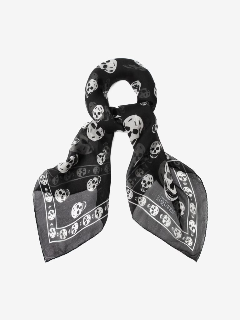 Desde que Lee Alexander McQueen presentó por primera vez el estampado de calaveras en su colección Irere de primavera‑verano 2003, esa pieza se convirtió en algo más que un accesorio . La bufanda automáticamente fue un símbolo de rebeldía elegante, un puente entre lo gótico y lo cool, sin perder ese aura. Con su bordes deshilachadas y mezcla de modal y seda, se volvió un must rápidamente: irresistible, ligera y con ese twist oscuro tan McQueen .