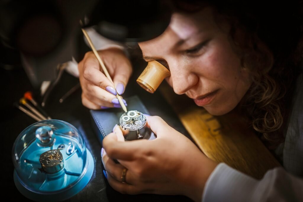 La noche del 21 de mayo, Chopard recibió a un selecto grupo de invitados en su rooftop con vista panorámica a la Croisette. La atmósfera: completamente transformada en un espacio de savoir-faire. Con estaciones de trabajo, herramientas relojeras y una narrativa visual que homenajeaba el arte de medir el tiempo. La estrella de la noche fue Juline, una joven relojera que forma parte de la maison desde 2018. Y que demostró, paso a paso, el detalle que hay detrás de cada pieza.