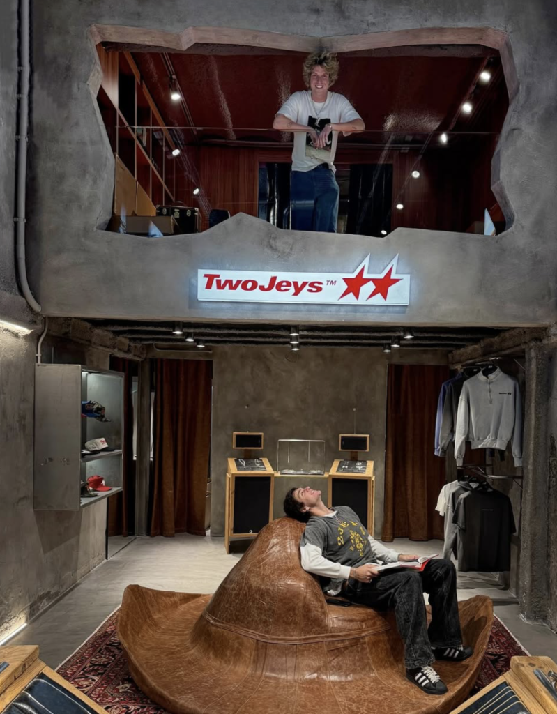 Two Jeys fue fundada en 2019 por Biel Juste y Joan Margarit en Barcelona. La marca nació con una estética atrevida, genderless y con toques nostálgicos, y rápidamente se convirtió en un fenómeno entre Gen Z e it girls por igual. Hoy, Two Jeys cuenta con tiendas físicas en Barcelona, Madrid y otras partes de Europa, además de envíos internacionales desde su web.
