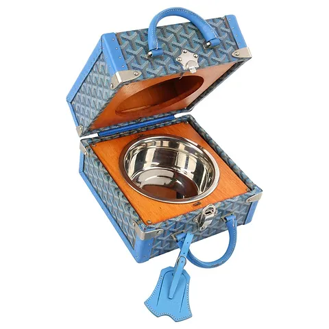 El Goyard Dog Plate Travel Bowl combina diseño y funcionalidad. Un accesorio único que refleja el lujo de la icónica marca francesa.