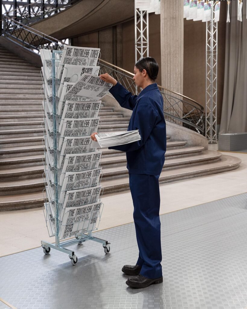 Con motivo de la presentación de prensa de ‘Tales & Tellers’ en el Palais d’Iéna, la artista Goshka Macuga, la curadora Elvira Dyangani Ose y el presidente de Art Basel Paris, Clément Delépine, revelaron el proyecto.