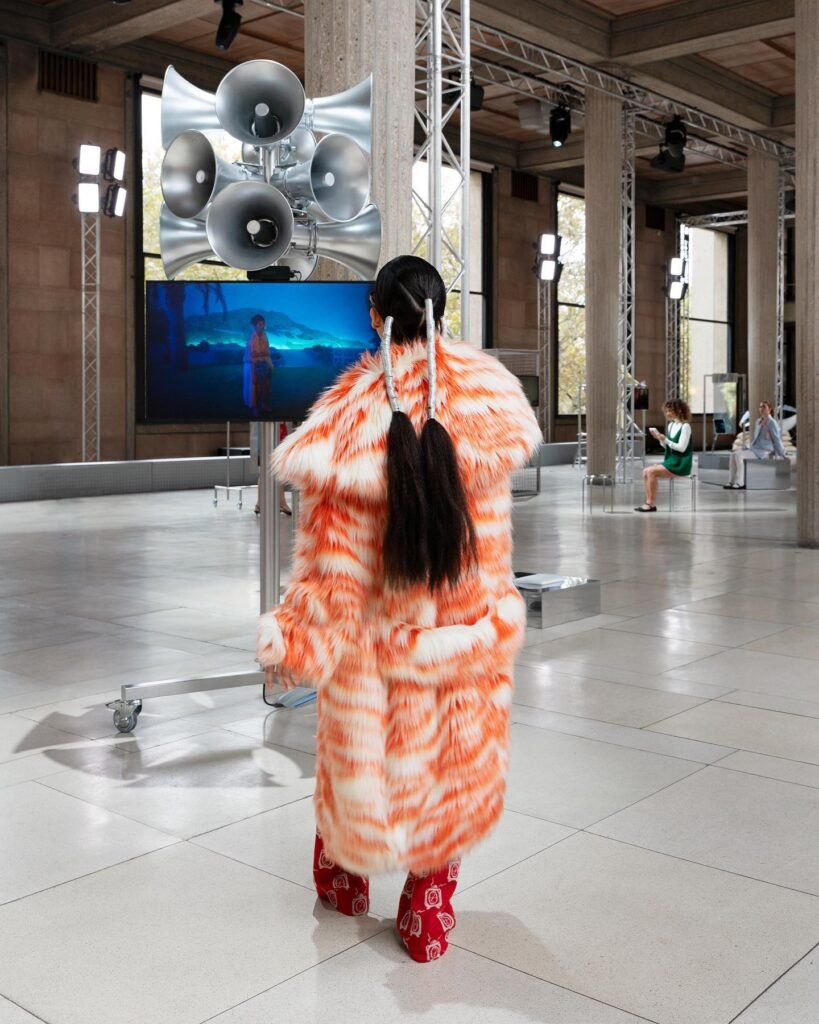 ‘Tales & Tellers’ es un proyecto artístico inmersivo y específico del sitio, que incluye una serie de proyecciones y conversaciones, influenciado por las colaboraciones de Miu Miu en el ámbito del cine y el arte. Cada comisión de películas, cortometrajes de Miu Miu Women’s Tales y videos de intervenciones artísticas en pasarelas desde la temporada Primavera/Verano 2022, están representados por un personaje, extraído directamente de estas colaboraciones y transformado en un conjunto de experiencias múltiples.