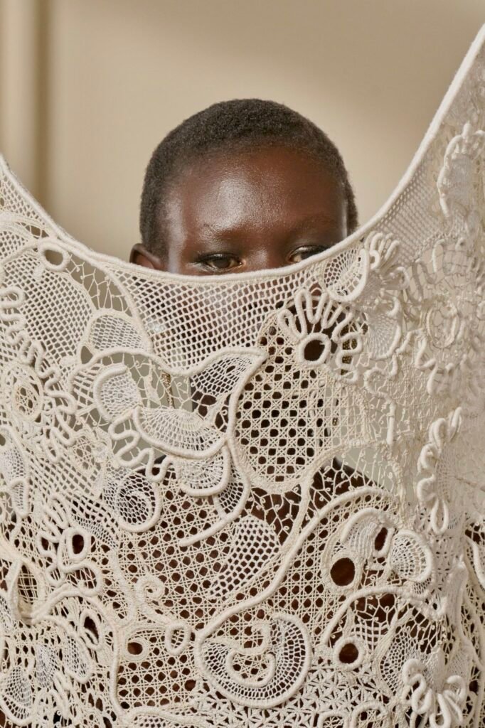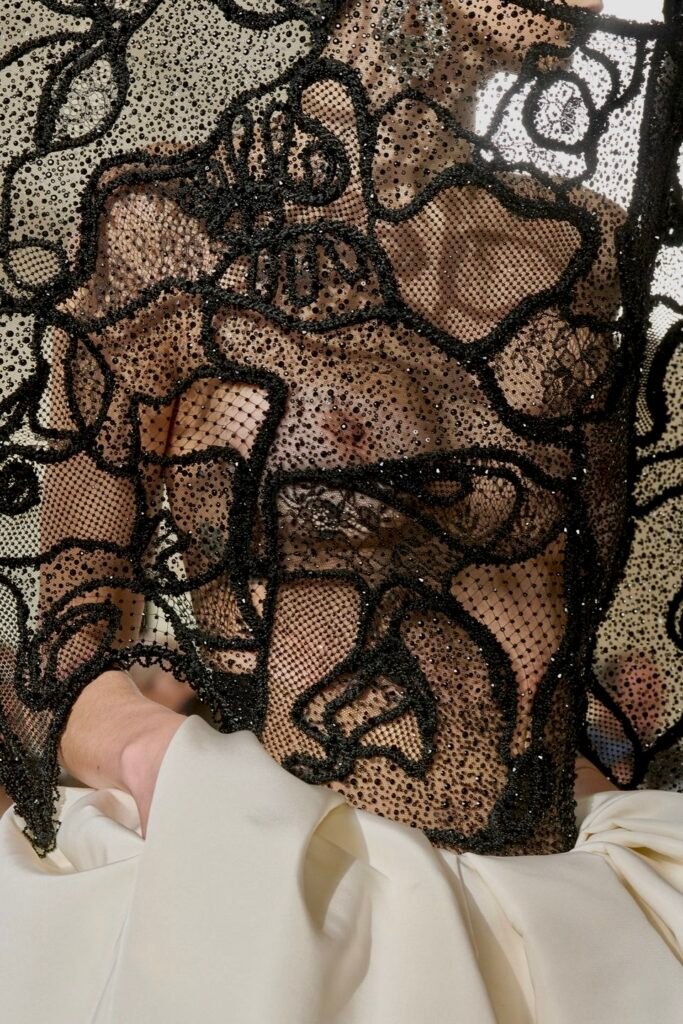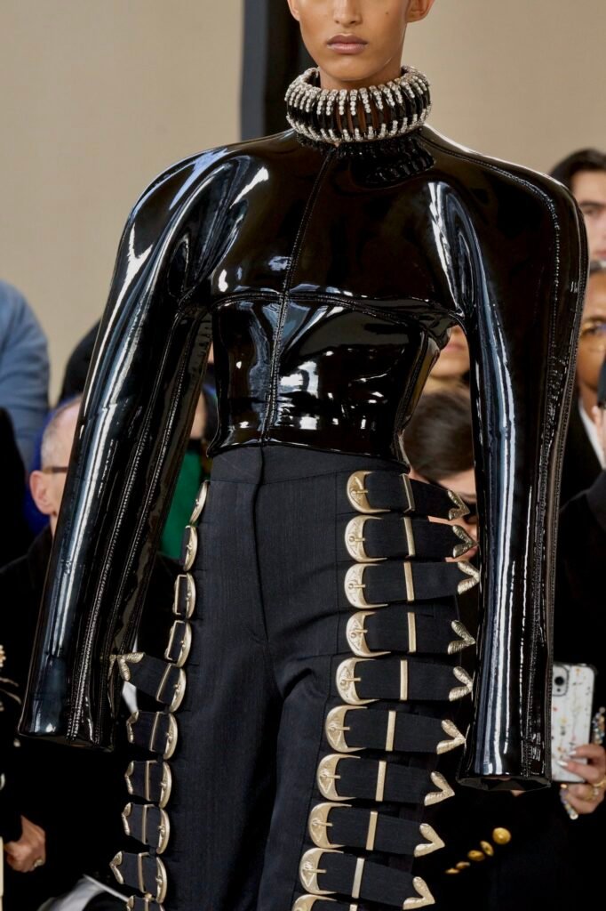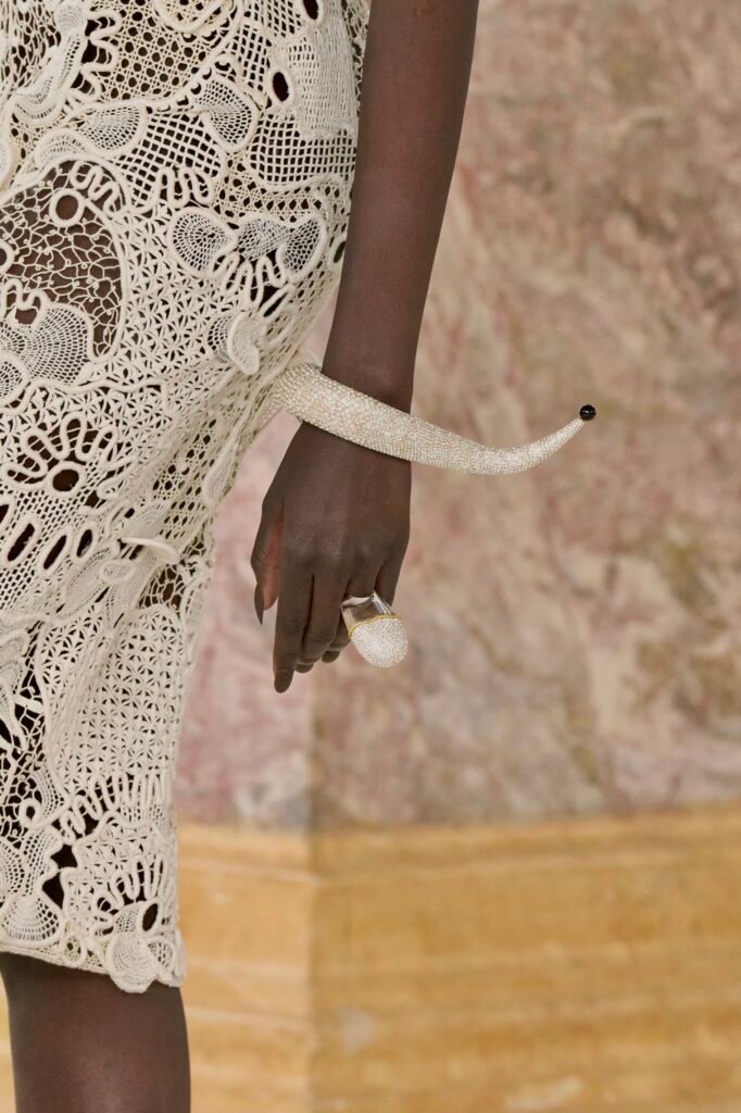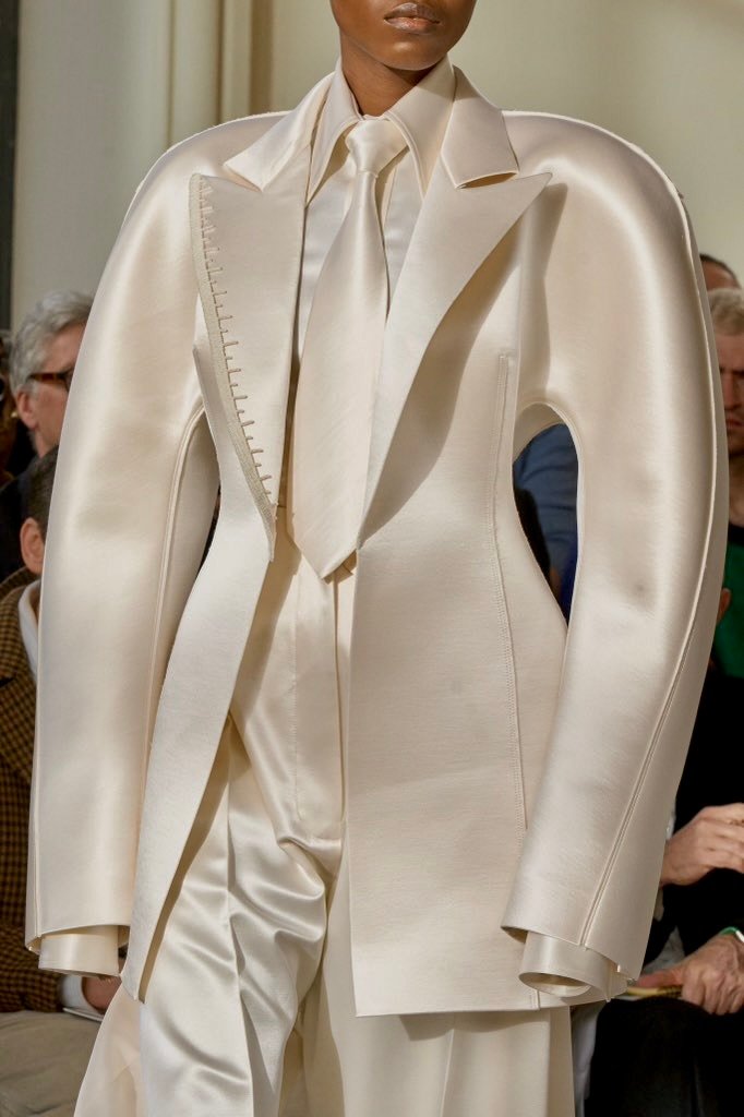 El volúmen fue parte del “leitmotiv” de la colección, atrás han quedado las transparencias y los flecos, centrándose en la parte superior del cuerpo. Las mangas abultadas son todo un clásico que se ha rescatado a través de la dirección creativa de la alta costura del pasado 2023