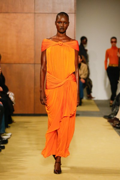 Los acabados lavados que otorgan una apariencia vivida a tejidos de punto y vestidos de seda, los jerseys anudados alrededor del cuerpo y los bordados metálicos aplicados manualmente aportan profundidad sensorial. La colección de Tory Burch equilibra lo humilde y lo precioso, transformando lo cotidiano en algo poético.