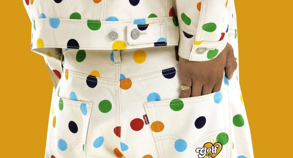 Tyler también ha trabajado con Levi’s en una colaboración que resultó en una colección de prendas denim, incluyendo chaquetas y pantalones, con detalles y adornos distintivos.
