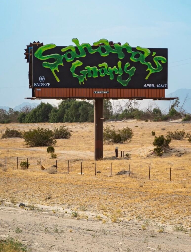 A lo largo de las autopistas que conectan Los Ángeles con el desierto, estos anuncios funcionan como una antesala cultural. No solo revelan artistas o activaciones, sino que construyen expectativa.