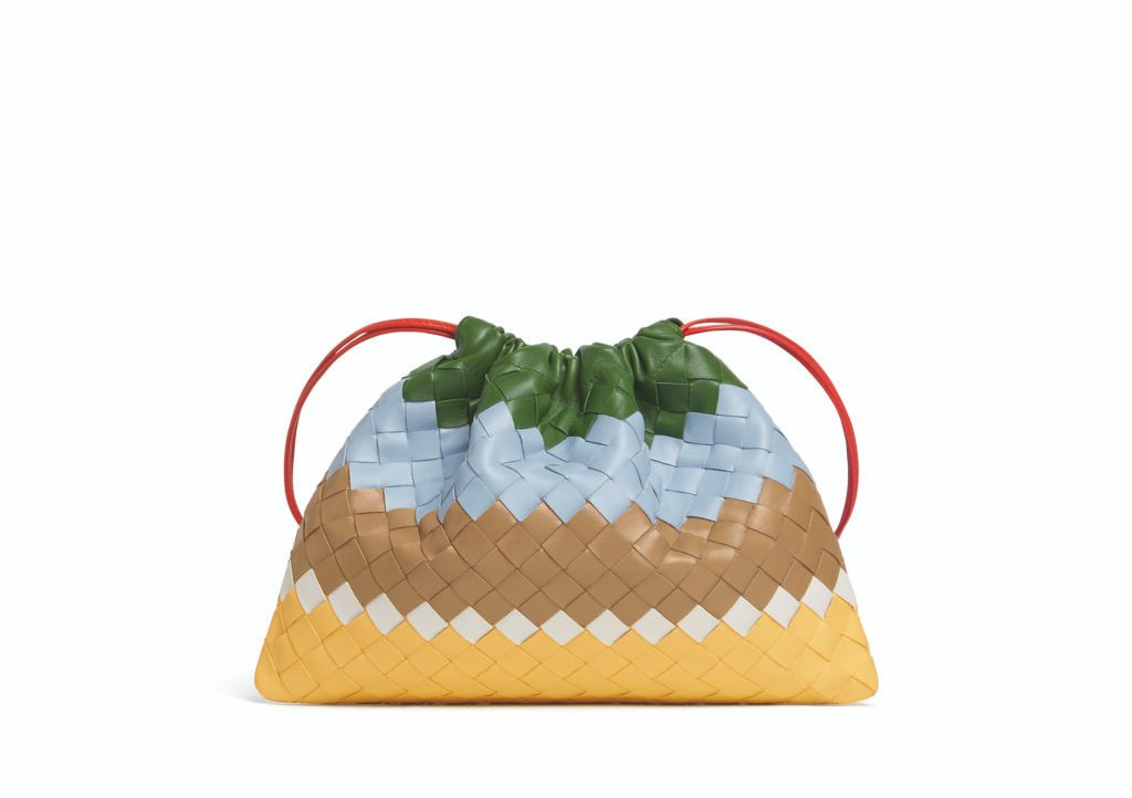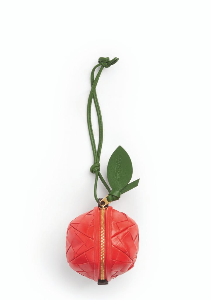 Inspirándose en el color y los motivos del universo Scarry, la colección cápsula incluye además una edición especial a rayas del Intrecciato Dust Bag en colores extraídos de la paleta de Scarry, así como un cinturón a rayas, un cinturón con hebilla en forma de manzana, carteras a rayas y un tarjetero.