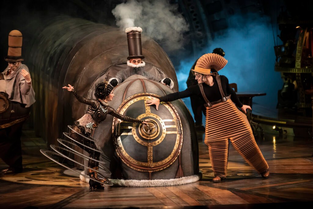 ‘Es como si Julio Verne se encontrara con Thomas Edison en una realidad alternativa, fuera de tiempo’, explica el escenógrafo Stéphane Roy. En esta realidad paralela, es la máquina de vapor y no el motor de combustión interna la que impera. La escenografía evoca el comienzo de la era industrial, pero como si la ciencia y la tecnología hubieran evolucionado de forma diferente y el progreso hubiera adquirido una dimensión más humana.