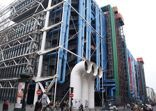 Centro Pompidou: Este museo y centro cultural es conocido por su arquitectura de estilo moderno, con un diseño exterior que exhibe sus tuberías y sistemas de soporte de manera visible y colorida.
