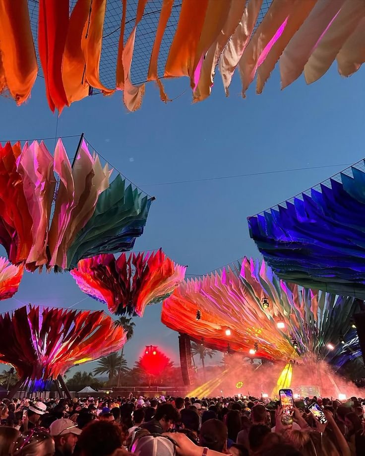 En total, Coachella suele contar con 6 escenarios principales + espacios alternativos, diseñados para cubrir todos los géneros y moods del festival.