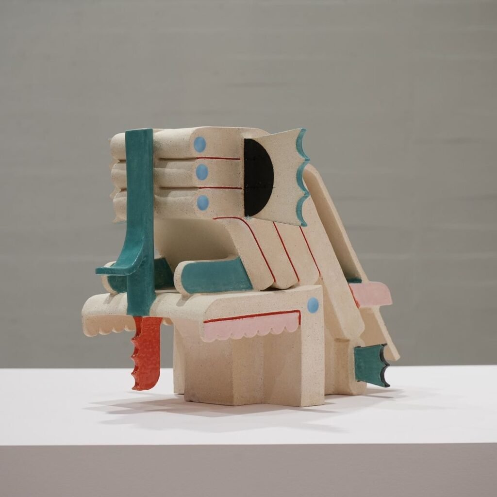 Mientras que sus esculturas parten de dibujos que el artista traza en su cuaderno, y antes de ser modeladas manualmente por medio de construcción de placas, parecen formas imposibles plagadas de referencias prehispánicas zoomorfas, de la escultura moderna monumental y el diseño industrial. Al ver tal perfección por mi mente rondaba la pregunta ¿Cuántas veces tuvo que hacer esta pieza para que quedara de esta pulcra forma?…