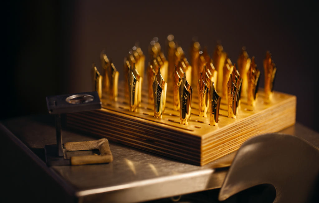 La experiencia inmersiva creada por Montblanc se centra en el arte de la creación del plumín, una de las expresiones artesanales más puras de la firma, que consiste en un proceso especializado con el que el oro se transforma en los plumines de sus célebres artículos de escritura.