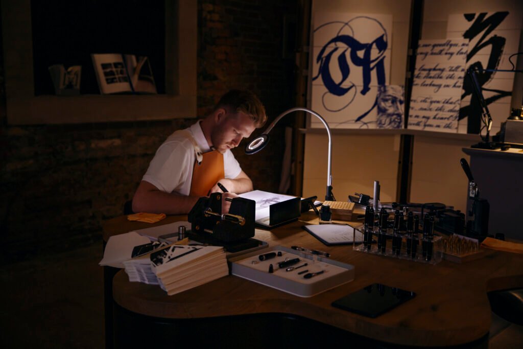 Dentro del espacio de Montblanc en la Fondazione Giorgio Cini en la isla de San Giorgio Maggiore, los visitantes conocerán la anatomía de la pluma fuente y la ingeniosa concepción de los diferentes elementos y funciones de este artículo de escritura. Esta experiencia inmersiva incluye una guía detallada con las 12 fases de producción necesarias para la creación magistral de un plumín, así como artesanos in situ que se dedican a crear plumines. En honor a la misión de la firma de «inspirar para escribir», los visitantes pueden descubrir o redescubrir la escritura a mano en la estación de escritura Montblanc gracias a la presentación de un plumín a medida y la posibilidad de probar tintas de distintos colores. Los expertos de Montblanc están a disposición de los visitantes para recomendar plumines específicos y explicar la selección de tintas que les permitan lograr una experiencia de escritura óptima.