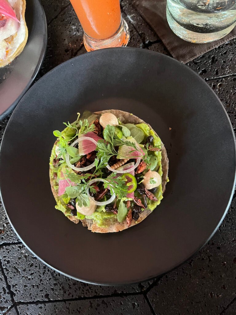 La ‘Cantina VI.AI.PY‘, es comida oaxaqueña por el Chef Alejandro Ruiz, portavoz fundamental del estado de Oaxaca. Aquí sugiero se tome la opción de comida, este lugar es a la carta, como un imperdible el guacamole con insectos, los esquites, el queso fundido con chorizo y la tostada de insectos sí o sí debe estar presente para abrir el apetito.
