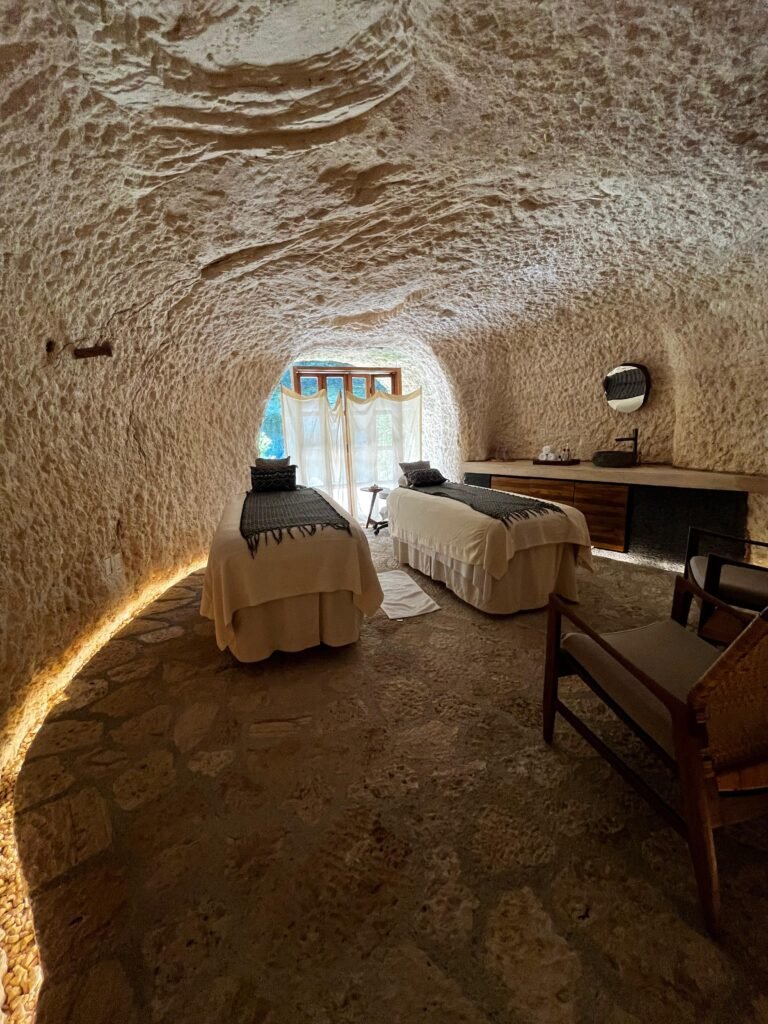 En el Santuario místico enclavado en roca natural. Permite que la naturaleza y lo último en tecnología de bienestar abracen tu cuerpo y alma. Disfrutar de la paz que se encuentra en el equilibrio, aquí cae el sol de manera espectacular, este espacio en mi visita lo destine para meditar y después entrar al spa.