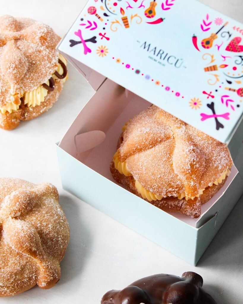 Para su decoración, el pan se espolvorea con azúcar blanca o azúcar morena, dándole un sabor ligeramente dulce que se complementa con el suave sabor de la mantequilla. Las «bolitas» en la parte superior simbolizan los huesos de los seres queridos que recordamos en esta temporada, mientras que el círculo central representa el cráneo, formando un todo que honra la memoria de nuestros ancestros.
