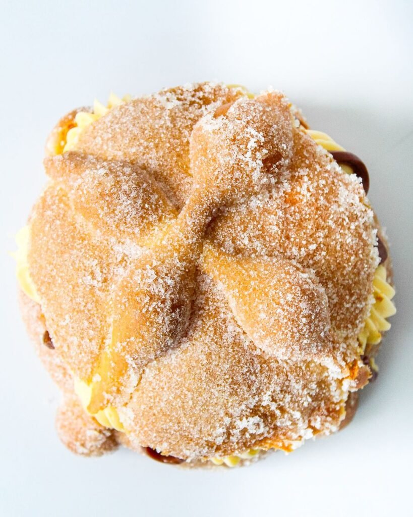 El pan de muerto de lavanda es una versión aromática que eleva este clásico mexicano a nuevas alturas. Con una masa esponjosa infundida con el delicado sabor de la lavanda, este pan ofrece un toque floral que complementa perfectamente la dulzura tradicional del pan de muerto.