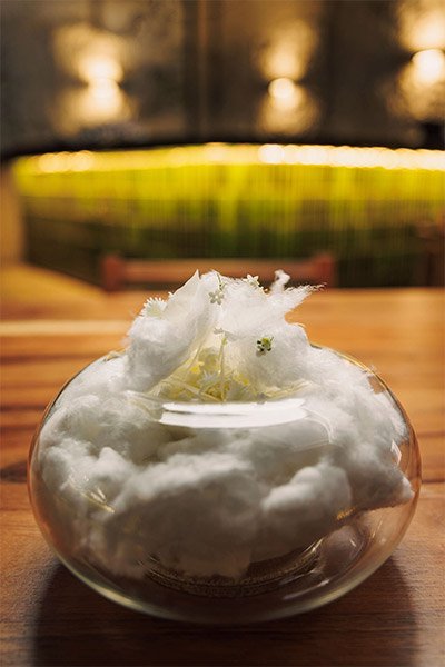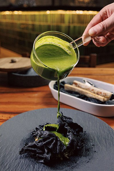 Cada platillo es una obra de arte culinaria que rinde homenaje a la nación, desde la composición de los alimentos hasta la experiencia de poder observar una cocina abierta hacen de esta experiencia una oda al placer. Las presentaciones meticulosamente cuidadas son articuladas por el chef Jonatán Gómez Luna quien transforma cada comida en una celebración de la cultura y la historia nacional. Su audaz visión y su pasión por la gastronomía se reflejan en el sofisticado menú, que incluye opciones como la Hoja de Quelites, el Mejillón Zarandeado, el Aguachile de Camarón, la Nieve de Coco y el Foie & Cacao.