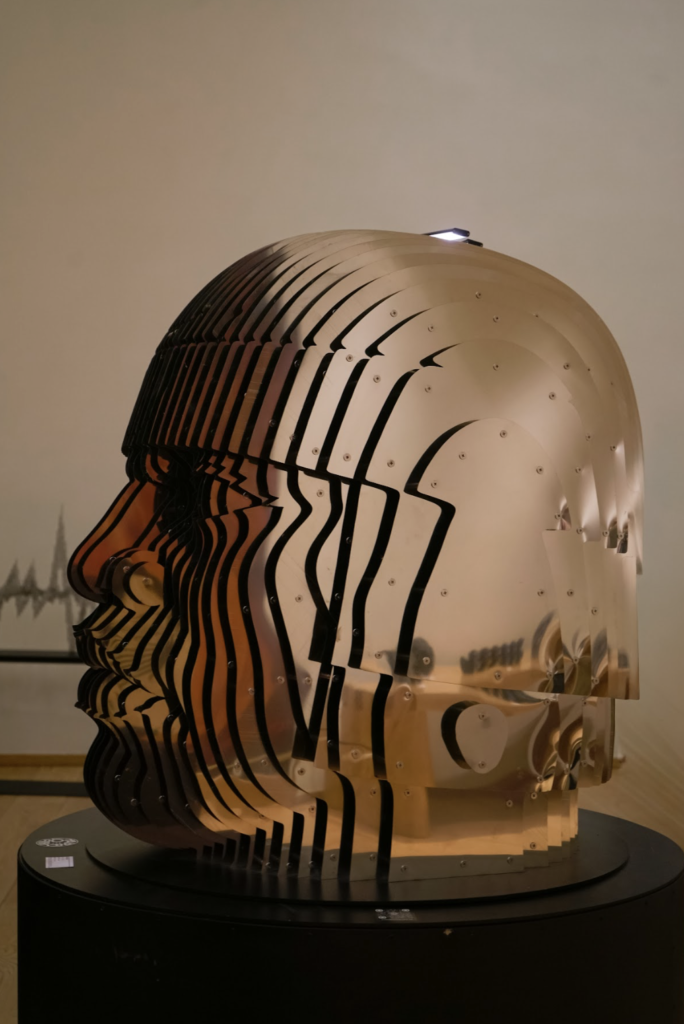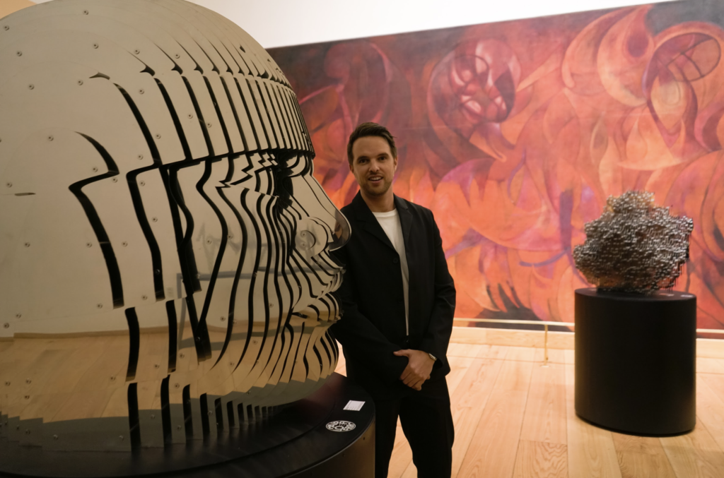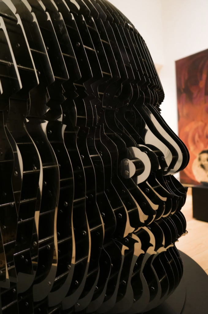 Bajo el título Raíces del Ahora, la exposición reúne 35 piezas inéditas en las que el artista reinterpreta símbolos del México prehispánico desde su distintiva técnica Invisibilia. Uno de los gestos más potentes de la muestra es la transformación de la icónica cabeza olmeca: lo que alguna vez fue piedra tallada se convierte en acero, desplazando su materialidad sin perder su carga simbólica.