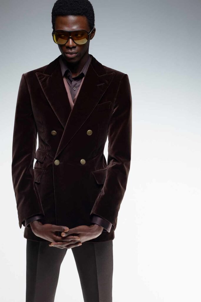 Los tonos negro, vino, café y blanco son el eje principal de estas piezas de Tom Ford, que nos envuelven en un concepto muy propio de la maison.