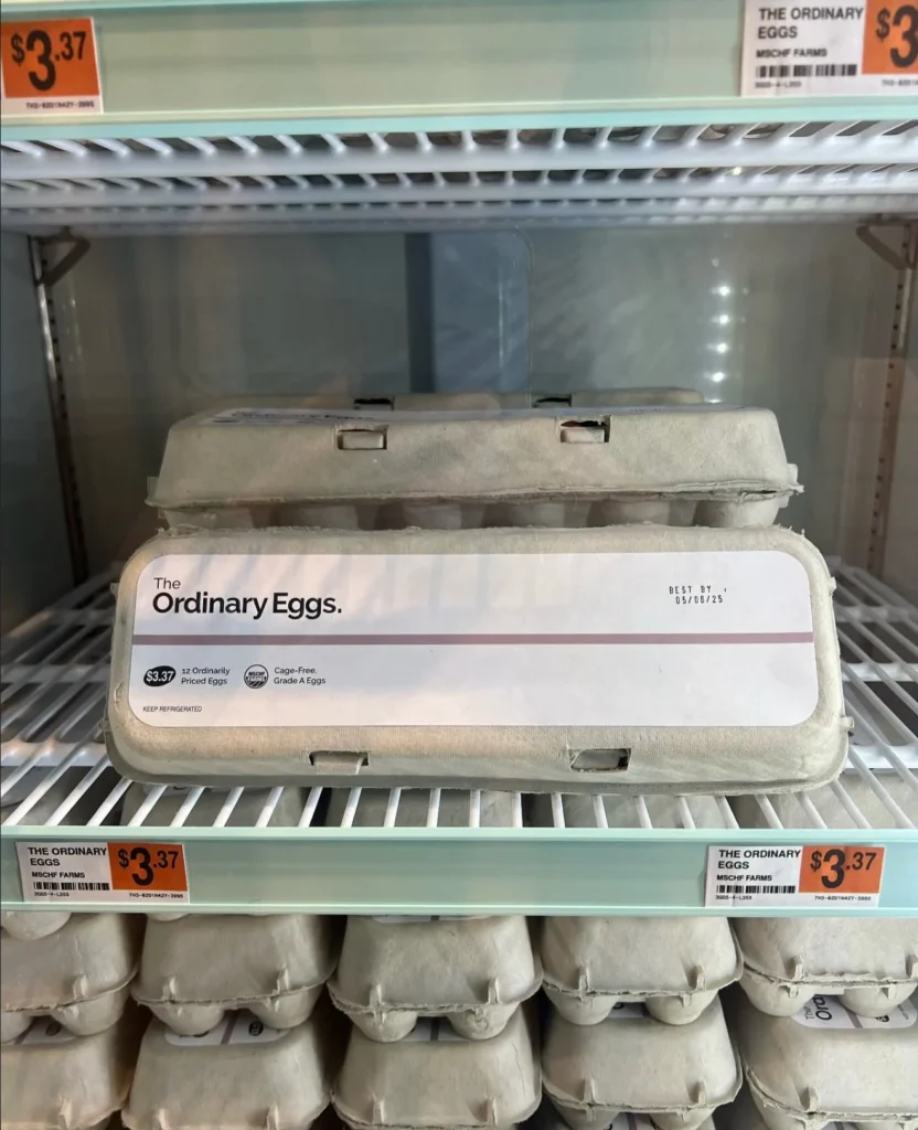 La idea nació en respuesta al dramático aumento de precios en productos básicos, pero lo que realmente ha encendido las redes es el choque visual entre una marca ultra estética y un alimento tan común como los huevos. Es el anti-lujo convertido en deseo aspiracional.