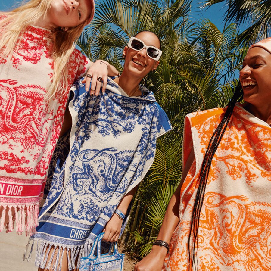 El estampado protagonista es La Toile de Jouy que viste de faldas, vestidos, shorts, trajes de baño y en algunos accesorios icónicos de la Maison.