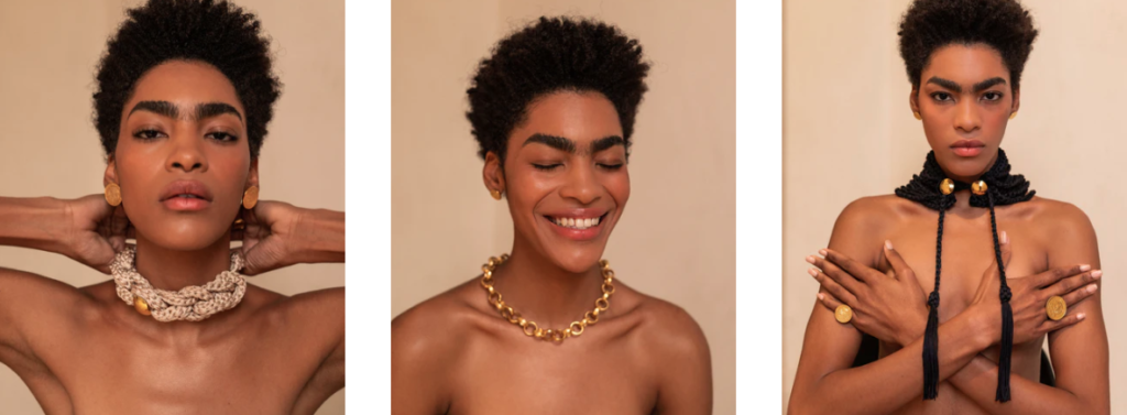 Ella y su pareja Julian Malleville, manifiestan su amor por los recuerdos en piezas de joyería que juegan con elementos como el algodón con verdaderos tesoros: monedas de oro de siglos pasados.