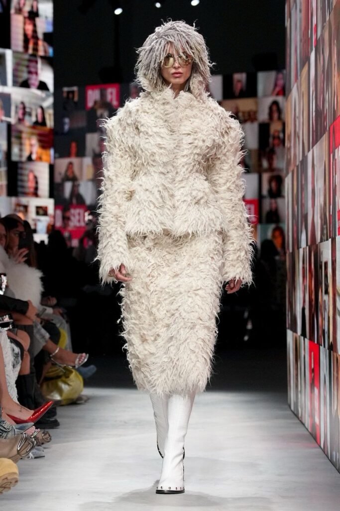 Diesel FW24 convirtió a las personas que llamaban por Zoom en las estrellas del espectáculo. Bajo la atenta mirada de 1.000 asistentes virtuales proyectados en las paredes de su pasarela. Los desfiles de Diesel de Glenn Martens son famosos por sus espectáculos gigantescos. Para la primavera de 2023, la pasarela del diseñador batió el récord mundial Guinness de las esculturas inflables más grandes del mundo, con una audiencia de casi 5.000 personas. En el escaparate de otoño de 2023 de la marca, los modelos caminaron entre torres hechas de 200.000 condones Durex de la marca Diesel, y el desfile de primavera de 2024 se transformó en una auténtica fiesta rave para 7.000 asistentes.