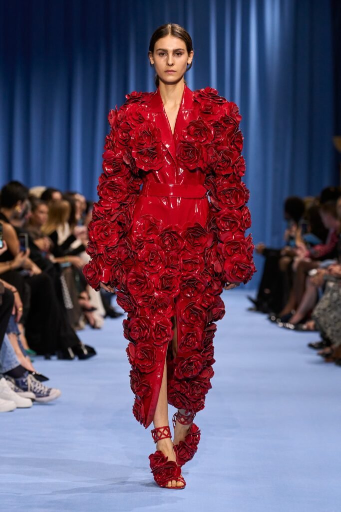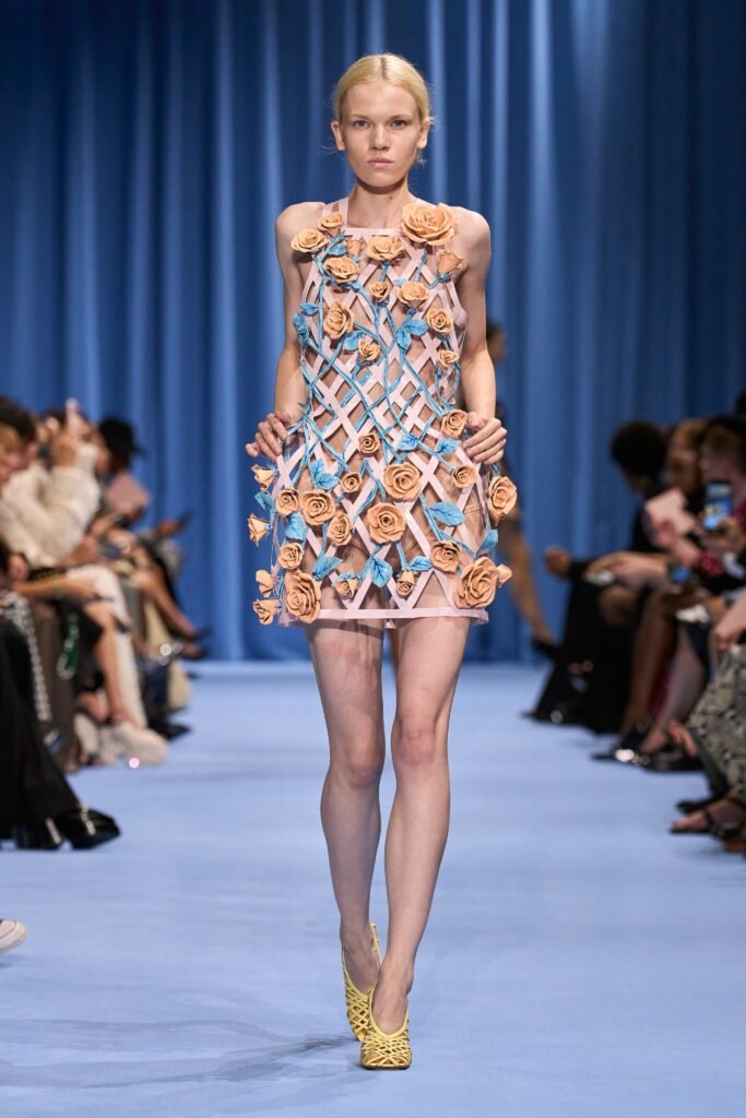 Las propuestas fueron una muestra de siluetas que desafían los estándares tradicionales con vestidos y faldas cuadradas, blazers con detalles particulares, vestidos de red y voluminosos, prints y flores sobre expuestas en la ropa.