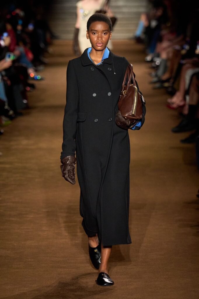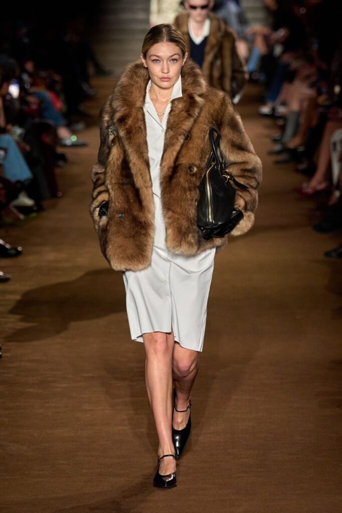 La casa italiana presentó su colección Otoño/Invierno 24-25 con un runway conformado por 68 salidas de la cual la número 61 fue protagonizada por la actriz española Ángela Molina, quien lució un vestido en color café y un cazadora con aplicaciones de pedrería, seguido de ella  la británica Kristen Scott Thomas, junto a top models como Gigi Hadid. Un runway en el cual la firma continúa subiendo a la pasarela a estrellas del mundo del cine y las series de televisión.