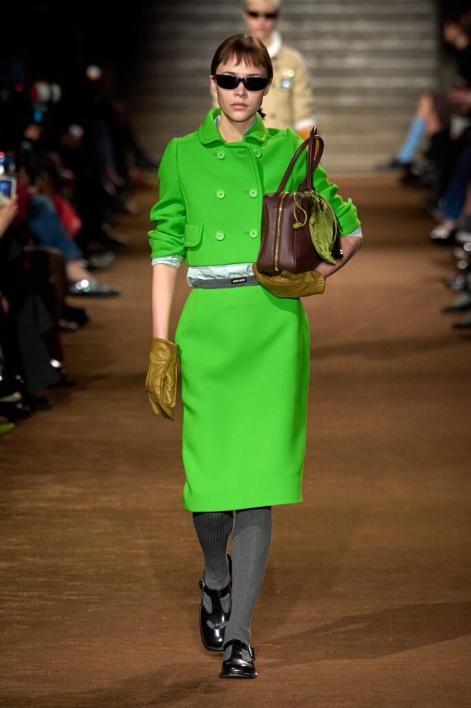 La paleta de colores se tiñó. Como un runway peculiar Miu Miu pone en tendencia el color amarillo, verde eléctrico, azul brillante, purpura y el color salmón. La presencia de los colores tierra se hicieron presente sin faltar la amada tonalidad en negro.