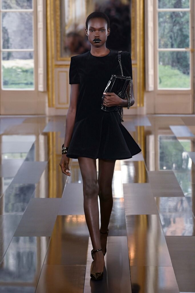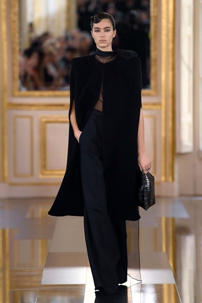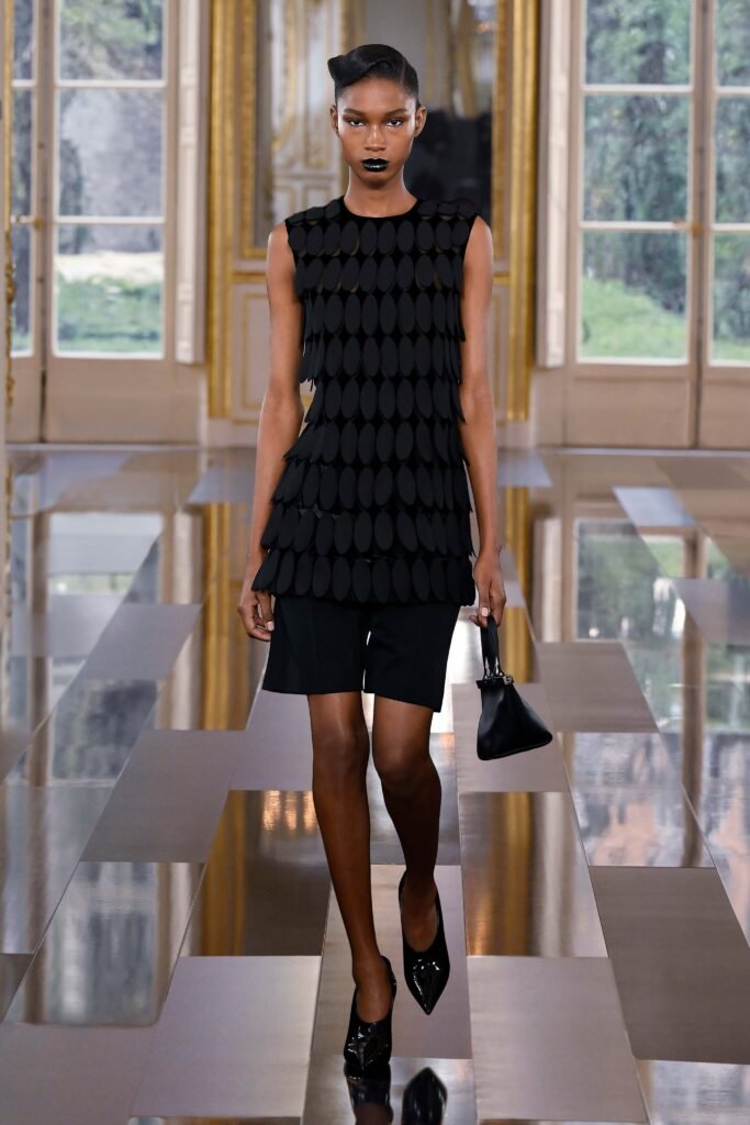 Para el runway de Maison Valentino, en una tonalidad negra.Como sinónimo de elegancia, sofisticaciòn y exclusividad absoluta.