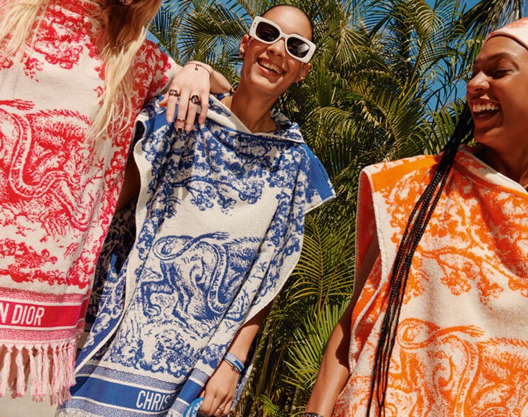 El estampado protagonista es La Toile de Jouy que viste de faldas, vestidos, shorts, trajes de baño y en algunos accesorios icónicos de la Maison.