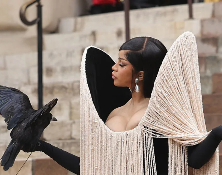 CARDI B LLEGA CON CUERVO VIVO AL DESFILE DE SCHIAPARELLI