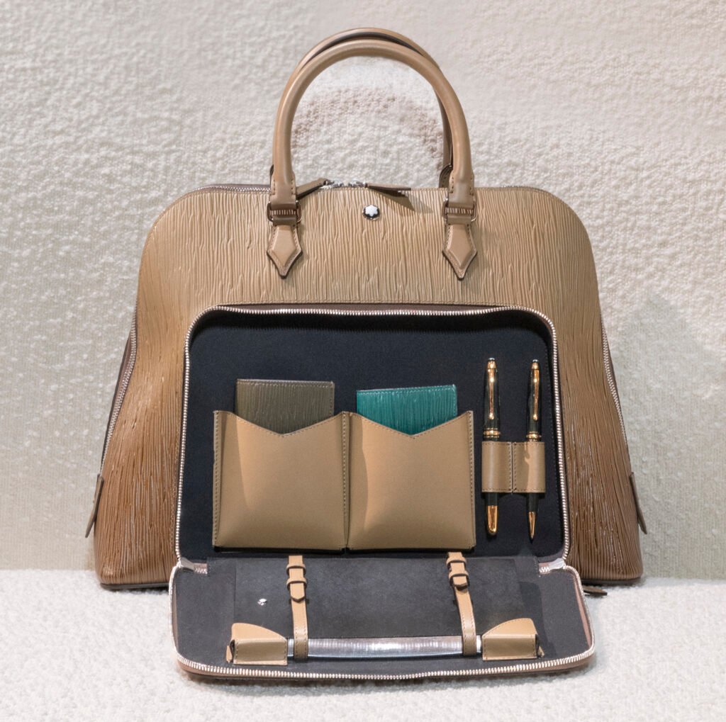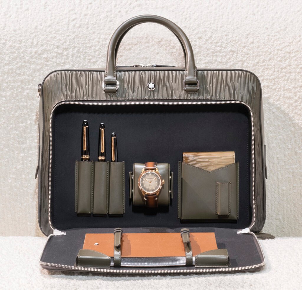 En el espacio principal de la sala de exposición, los invitados pudieron ver las novedades Montblanc Otoño/Invierno 2025, concebidas por Tomasetta como compañeros de por vida para el descubrimiento personal. En el centro de las nuevas de las nuevas colecciones era el Writing Traveller, un bolso de diseño elevado meticulosamente de escritorio, desde instrumentos de escritura hasta cuadernos. La pieza aúna la artesanía en piel de Montblanc con el universo del escritorio.