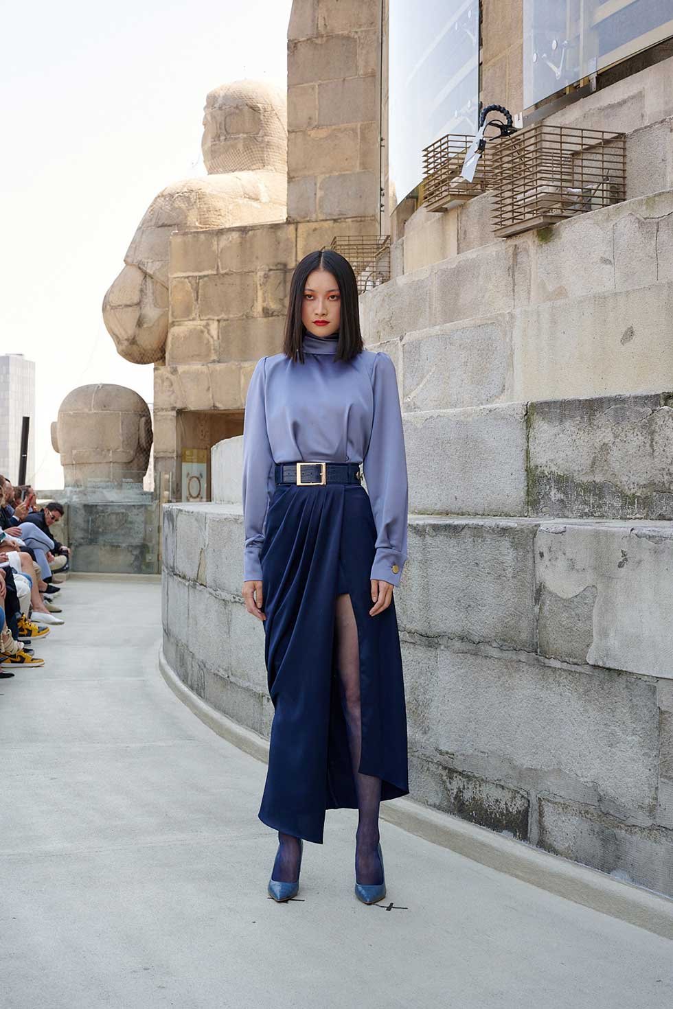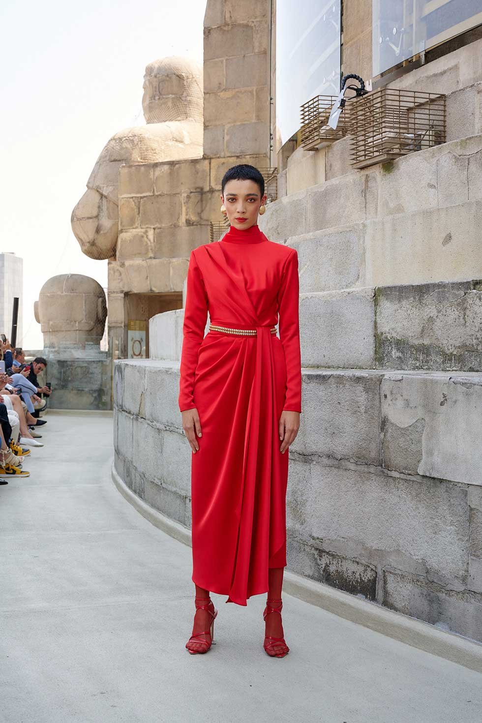 En el piso más alto del Monumento a la Revolución, su paso por el Mercedes Benz Fashion Week México, le puso picante rojo al calendario de la semana de la moda.