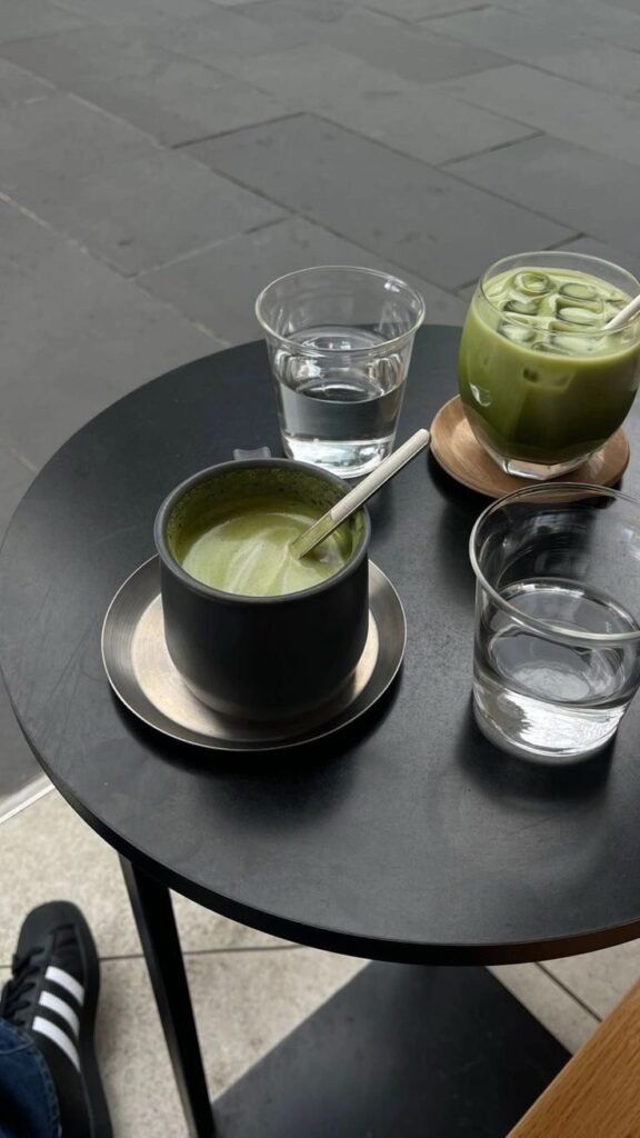 Visualmente, es un statement. Un matcha en mano dice que te importa lo que consumes, pero también cómo lo consumes. Tiene cafeína, sí, pero no la misma que un espresso. Te despierta sin abrumarte. Además, está cargado de antioxidantes y L-teanina, un aminoácido que calma mientras activa. Por eso muchos creativas y modelos lo eligen: porque energiza sin caer en la ansiedad.