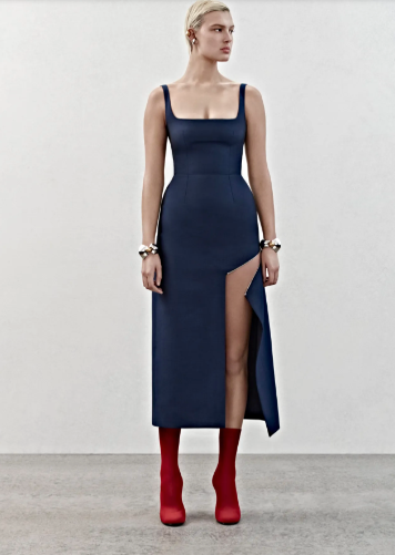 Vestidos, faldas, corsets, pantalones de sastrería, tops, jeans, chaquetas, bolsos y joyería… es de lo que se compone este lanzamiento que va en una paleta de colores negro, blanco, gris, rojo, naranja, azul, plateado y un solo look en amarillo y otro en rosa.