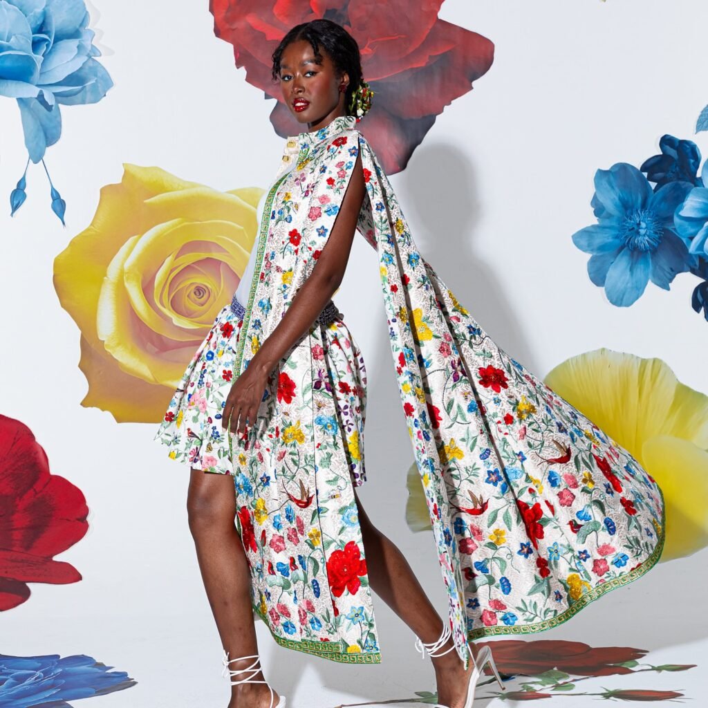 Las flores dejaban de ser en 3D y se combinaban con el fondo negro de las prendas, creando siluetas que recordaban a los papeles tapiz que encontramos en los museos de arte.
