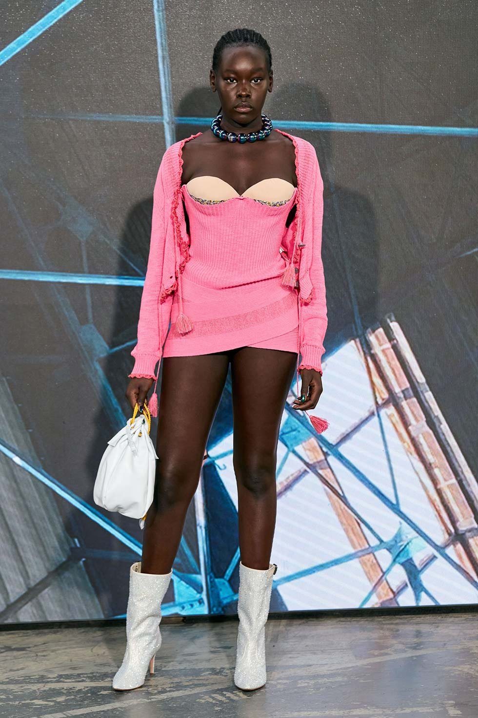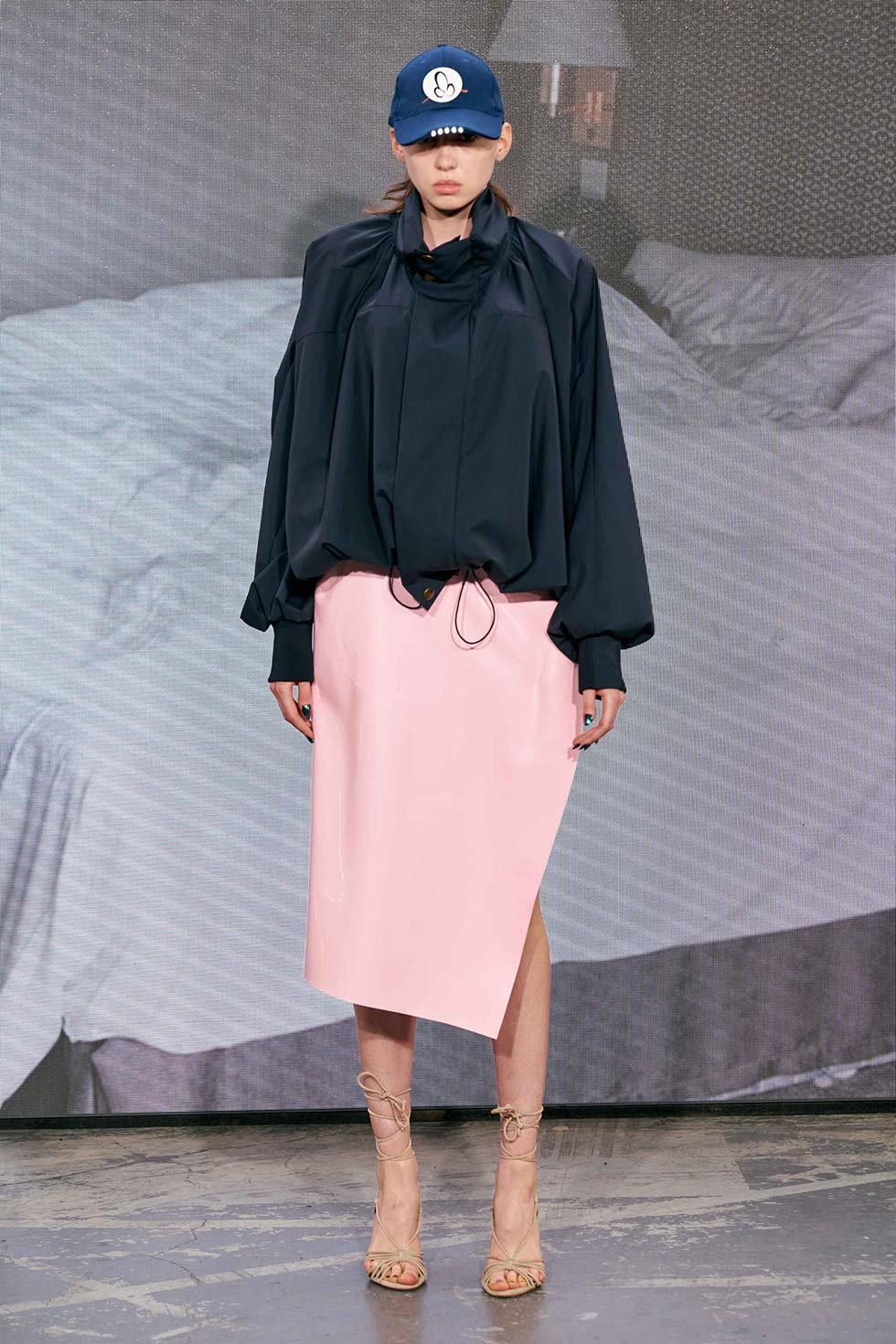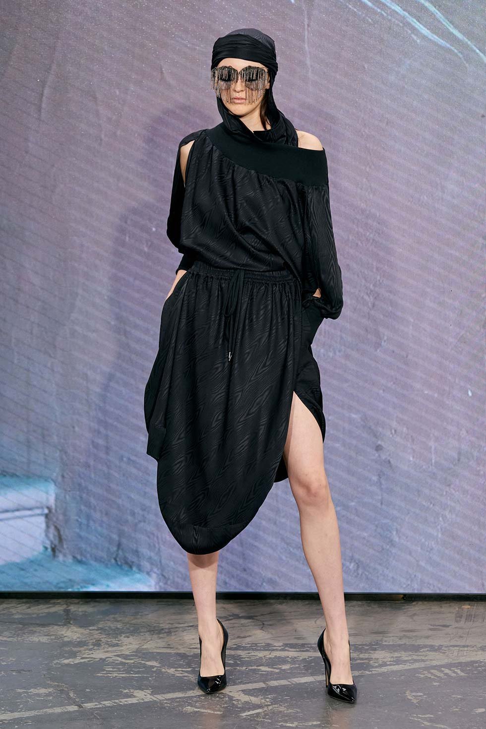 Uno de los looks más sorprendentes fue el de Lindsey Wixson, que iba acompañada con un peluche de Sócrates envuelto en la cabeza con un trozo de tela.