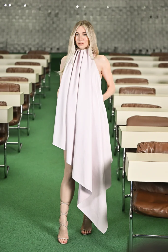 Después del maximalismo pop de Barbie, Mukamal se volcó a la elegancia minimalista con Vanessa Kirby, recientemente confirmada como Sue Storm en Fantastic Four. Para los eventos recientes, la ha vestido en tonos neutros, siluetas puras y piezas de archivo. Busca crear una estética que evoca misterio, poder y sofisticación sin tiempo. La diferencia no es solo de color, es de personaje.